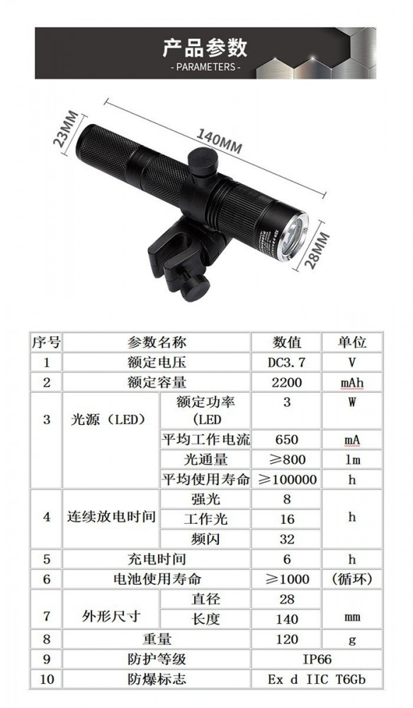強光防爆手電具有一定的便利性和實用性。它體積小巧,便于攜帶,可以卡在頭盔上并且具有IP66D的防護等級,可以持續(xù)強光模式8h,可以在許多場景中發(fā)揮作用,如夜間行走、戶外探險、緊急維修等。