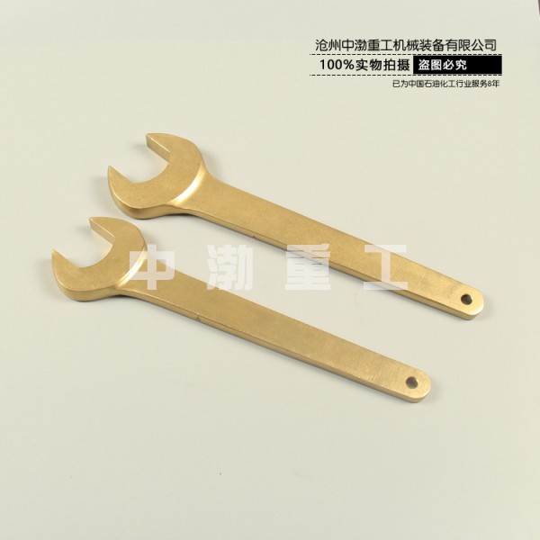 防爆單頭呆扳手,是重要的防爆扳手,采用鋁青銅合金制造,直柄設(shè)計(jì),更加省力。一端制有固定尺寸的開口 ,用以擰轉(zhuǎn)一定尺寸的螺母或螺栓